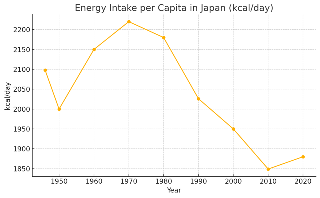現代の総摂取カロリーは 1900kcal前後。